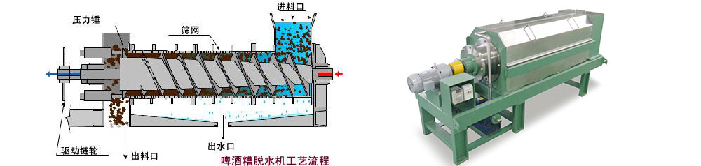 啤酒糟脫水機(jī)是鄭州泰達(dá)設(shè)備有限公司針對啤酒糟液分離開發(fā)的專用脫水設(shè)備。啤酒糟脫水機(jī)可將含水量85%左右的啤酒糟液擠壓處理到55~60%左右的含水率。啤酒糟脫水機(jī)采用螺旋擠壓脫水機(jī)對物料進(jìn)行脫水,螺旋擠壓脫水機(jī)可廣泛應(yīng)用于高濕糟渣物料干燥前的脫水作業(yè),如酒糟、果渣、啤酒糟、木薯渣等的脫水,大大減輕干燥機(jī)的負(fù)擔(dān),產(chǎn)量大幅度提高,能耗大幅度降低,是高濕物料干燥前必不可少的處理設(shè)備,經(jīng)過脫水后的物料可以直接進(jìn)入干燥設(shè)備,大幅度降低了干燥能耗。