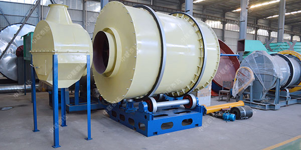 根據熱功原理,筒內裝有不同角度和間距的揚料板和導料板,這種結構能夠保障被烘干物料在重力作用下沿著螺旋的運動方向運動,在筒內保持足夠的停留時間和充分的分散度,致使物料在筒內與來自燃燒室內的熱氣流進行充分的熱交換,消除了常規烘干設備截面常出現風洞而引起的熱交換面積小、單位容積蒸發強度低的缺陷。